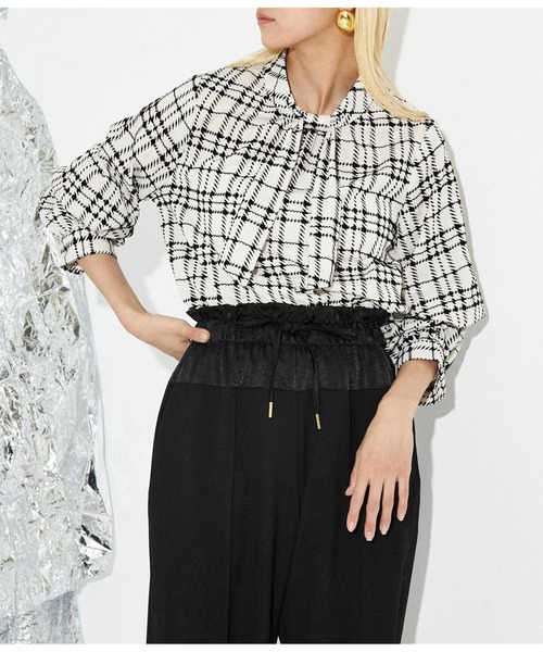 フロッキー素材のチェック柄が上品なブラウス。 ボウタイデザインがフェミニンでエレガントな印象に。 袖内側に付いているボタンの付け外しで袖のディテールを変えて着用いただける2WAY仕様です。 さらっとした程よくハリのある生地感もポイント。 ロングスカートやワイドパンツにタックインするだけで、洗練された着こなしが完成します。 ※ストレッチなし※裏地なし ※若干透ける素材になっております。 ※この商品に施したフロッキー加工は、着用中の摩擦(特に湿った環境での摩擦)により、フロック部分の毛羽が脱落し、ほかの衣料などに色が付く可能性があります。白物や淡色系の衣料とのご着用はお避け下さい。 ※生地のデザイン上、実際の商品と画像とで柄の配置が異なる場合がございます。予めご了承ください。 ※商品のお取扱いに関しましては、商品に付属のアテンションカード、洗濯ネームをご覧ください。 ※モデル着用画像は光の当たり具合で色味が違って見える場合がございます。 ※商品の色味の目安は、色見本画像をご参照ください。 【お買いものをお楽しみいただく為に!】 ▼商品のお気に入り登録 完売カラーの再入荷通知や、ラスト1点の通知、セールの通知も受け取ることができます。 ▼ブランドのお気に入り登録 新商品や再入荷など、いち早くブランドのお得な情報を受け取ることができます。