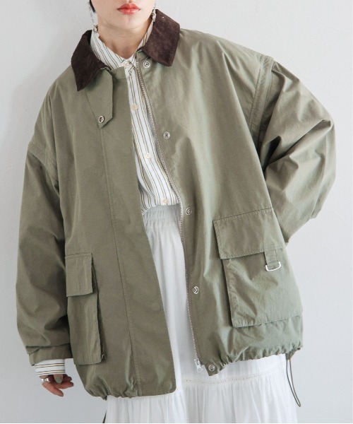 カジュアル、ミリタリースタイルの定番!ーーー■ポイント・トレンド感溢れるオーバーサイズのミリタリージャケット・袖の取り外せる2WAY仕様で、ベストとしての着こなしも!・チンストラップを立てれば、トレンドのスタンドカラー仕様に◎・襟、ポケット部分のコーデュロイ仕様がポイント!・柔らかく重すぎない生地感で、着心地抜群の一着・中に厚手のトップスを着込んでも、ストレスを感じないサイジング・ボックスシルエットに仕上げ、キレイめコーデとも相性抜群!・裾にはドローコードを仕込み、絞るとバルーンシルエットに変化◎・ヴィンテージ古着のような雰囲気に仕上がりました。■素材コットンとナイロンの混紡素材で、柔らかさとハリ感を持ち合わせた一着。重すぎず程よく厚みのある生地感に仕上げ、軽アウターとして活躍間違いなし!中にはチェックの裏地をあしらい、こなれ感漂うお洒落な仕上りです◎ーーー■スタイリングスウェットやボーダーロンTなどと合わせた、古着ライクコーデと相性抜群!ニットやカーディガンとの、大人カジュアルなスタイリングもおすすめです◎ボトムスは、デニムが定番!スウェットパンツやスノーパンツと合わせればトレンドライクに、ロングスカートやシアーワンピとのキレイめコーデにも映えます!