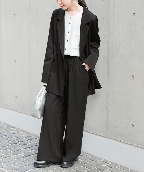 ■デザイン ストレートシルエットがキレイなワイドパンツ。 カジュアルコーデだけでなく、きちんと見えも叶えてくれる万能アイテム。タック入りでゆるっと着用&センタープレスで脚長効果も◎ 同素材のアイテムを合わせれば、大人のセットアップスタイルが完成します。 ■素材 マットな光沢感が上品な、シワになりにくくお手入れしやすいポリエステルツイル生地を使用。 裏地なしのすっきり見えする仕様で、夏以外のロングシーズン着回せます。