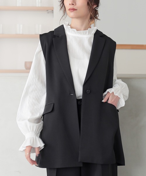 \オンオフ頼れる!待望の復活アイテム/ 【setup 対応】『羽織るだけで、即・上品。オンオフ頼れる主役級ジレベスト』 「いつものコーデ」が、これを重ねるだけで特別に変わります。 【あの大人気ジレベストが復活!】 シャープな印象を与えるテーラードカラーのジレ ベスト です。 程よい厚みとハリのある上質なツイル生地を使用。 滑りの良い裏地付きで夏以外のロングシーズン着回せます。 体型を選ばず美しく着こなせる、選べるサイズ展開も嬉しいポイント。 【着るだけで、いつもと違う私に。】 コーデにプラスするだけでお洒落見えが叶うツイルジレベスト。 大人の魅力を引き立て、デイリーからお呼ばれまで幅広く活躍する一着に仕上げました。 【ハレの日も、私の日常も。】 入学式や卒業式、結婚式や二次会、 セレモニー、パーティー、学校行事などのシーンに大活躍! フォーマルなシーンには、同素材のパンツと合わせたセットアップスタイルで。 日常では、デニムやTシャツの上にさらっと羽織ってカジュアルダウン。 オンとオフ、どちらのシーンでも「品のある大人」を演出してくれます。 【「隠したい」を自信に変える。計算されたシルエット】 お尻周りをカバーする絶妙なロング丈設計。 サイドに入った深めのスリット、シーム切替でスッキリ着用できる。 アームホールは広めの設計。 ボリューム袖のブラウスや厚手のニットの上からも、ごわつかずスマートにレイヤード可能です。 【機能性とデザインの両立】 フロントには、デザインのアクセントにもなるフラップポケットを配置。 スマホや小物をさっと入れられる実用的でありながら、全体のシルエットを邪魔しない計算された配置です。 ▽同素材のワイドパンツでオケージョンスタイル 【 商品コードをコピー → 検索 】 商品名 :ストレートワイドツイルパンツ 商品コード:80802951 ブランド品番:24-6001(pln0012) ......................................... n'OrLABEL ほかにない、私のデイリーウェア 毎日の生活を心地よく自分らしく過ごすための服。 遊び心を取り入れた、大人のカジュアルスタイル。 .........................................