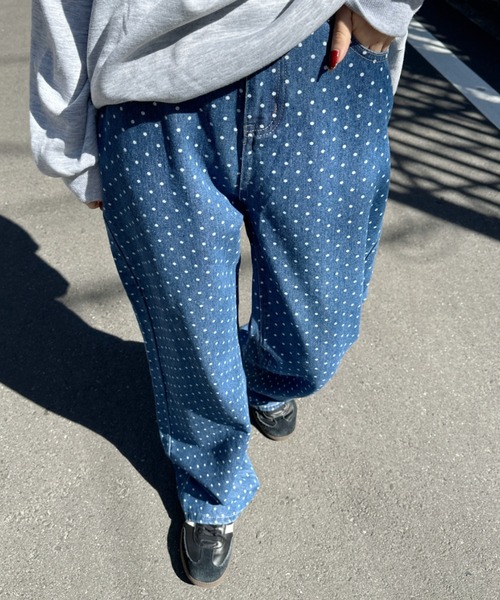 ドット柄がアクセントに♪ 使い勝手抜群ワイドデニムパンツ! ■Point 全面にホワイトのドットがあしらわれたワイドデニムパンツ! ドットは小さめなので派手すぎずも、ほどよい存在感をコーデに与えてくれます。 オールシーズン使えるデニムパンツは着回しが効いて大活躍間違いなしのアイテム◎ ■Style ワイドなシルエットなので、クロップド丈などコンパクトなトップスとの相性が良いです! オーバーめなトレーナー、パーカーと合わせてストリートスタイルも韓国ライクで◎ あえてガーリーなトップスと合わせるのもオススメ♪ 【CLEA/クレア】 毎日のシンプルスタイルを、さりげなくオシャレに。 casual fashion every day to you. . . シンプルだけど、どこか女性らしい。 さりげないのに、なんだかオシャレ。 上品さと抜け感のある、 大人カジュアルスタイルをご提案します。 ※ご覧のモニター・撮影環境により実際の商品と多少色味が異なって見える場合がございます。 予めご了承をお願いいたします。 【お買い物をよりお楽しみいただく為に!】 ▼商品のお気に入り登録 ハートをクリック! 完売カラーの再入荷や、ラスト1点の通知、セールの際の通知を受ける事ができます。 ▼ブランドのお気に入り登録 新商品や再入荷など、いち早くブランドのお得な情報を受け取ることができます。 ※他のキャンペーンにより、期間中に価格が変動する場合があります。※セールは予告なく終了させていただく場合もあります。