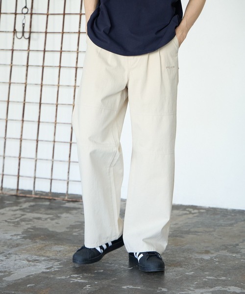 フロントタックデザインがポイントのワイドパンツ。 シンプルながら切り替えデザインがコーデのアクセントになります。 また、ウエストは後ろ部分がゴムになっているので楽な着心地。 2サイズでユニセックスでサイズをお選び頂けるのもポイントです。 素材は、体に馴染む柔らかい綿を使用し洗いをかけた落ち感とヴィンテージ感のある風合いが魅力的です。 厚手すぎない生地と季節を問わないカラバリでロングシーズン着回しを楽しめます。 〈注意事項〉 ・サンプルにて撮影をしておりますので、実際の商品とは素材や仕様・加工・サイズ等が若干異なる場合がございます。 ・モニター・環境等により実際の商品と色味が多少異なって表示される場合がございます。予めご了承をお願いいたします。 ・撮影環境により、光の当たり具合で色味が違って見える場合があります。あらかじめご了承下さい。 ・同商品でも、生産の過程で1~2cmの個体差が生じる場合があります。 ▼気になるアイテムは《お気に入り登録》がおすすめです! 完売カラーの再入荷情報、セール情報、ラスト1点の通知を受け取ることができます! ▼《ブランドのお気に入り登録》で新商品や再入荷などのお得な情報をいち早くお知らせします。