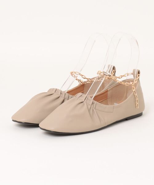 【アンクルチェーンスクエアフラットパンプス】足首の華奢なチェーンが上品なフラットシューズです。〈detail/fablic〉フラットなので、歩きやすいのはもちろん、履き口が広く脱ぎ履きしやすい機能性も兼ねそろえた1足。細めなチェーンが、足元を上品に、豪華に、また華奢に魅せてくれます!ワントーンで統一感のあるシンプルなデザインなので、使いやすい!〈styling〉アンクルチェーンがかわいいワンポイントなガーリーな雰囲気満載のフラットシューズデートや旅行など、いつも以上におしゃれしたいときにおすすめ!パンツスタイルにもワンピーススタイルにも合わせやすく、足元からオシャレを目指せるフラットシューズです