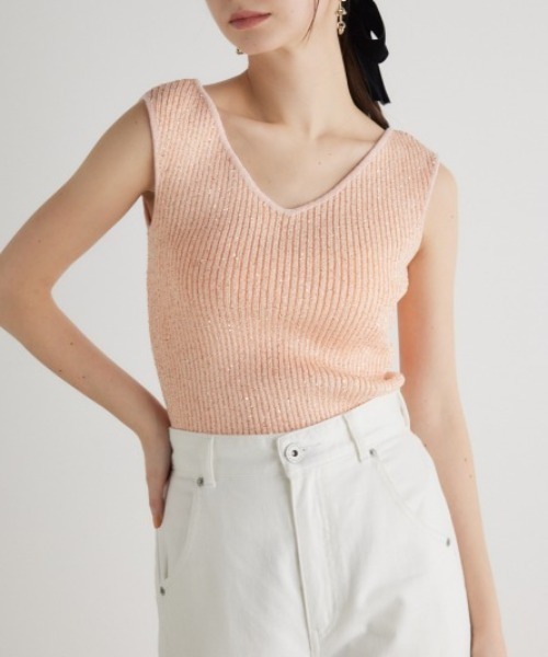 【キラキラと輝くスパンコールが華やかなニットトップス】 【Design】 全体に散りばめられたスパンコールが1枚で華やかな印象を与えてくれます。 広く開いたデコルテと体に沿うリブ編みが、多様なスタイリングに合わせ易いのがPoint。 アームホールと襟ぐりはスパンコールの入っていない糸でパイピングしてあるので、肌当たりにも考慮しました。 シンプルなアイテムでも様になるトップスは、1枚あると大変重宝するアイテムでお勧めです。 【Color】 爽やかでクリーンな印象を与えるWHT、血色感のある色味が顔周りを明るく魅せてくれるL/ORG、大人っぽさと上品さを兼ね備えたBLU、センシュアルな印象を与えるBLK、の4色展開です。 ■透け感:無し ■光沢感:有り ■伸縮性:有り ■裏地:無し ▼商品のお気に入り登録 お気に入りアイテムの値下げ・再入荷・在庫1点などの通知を受け取ることができます。 ▼ブランドのお気に入り 登録新商品や再入荷、セール、クーポン配布などお得な情報を受け取ることができます。 こちらの商品はrienda独自の採寸方法となっています。本サイトのサイズガイドと採寸方法が異なる場合がありますのでご了承ください。