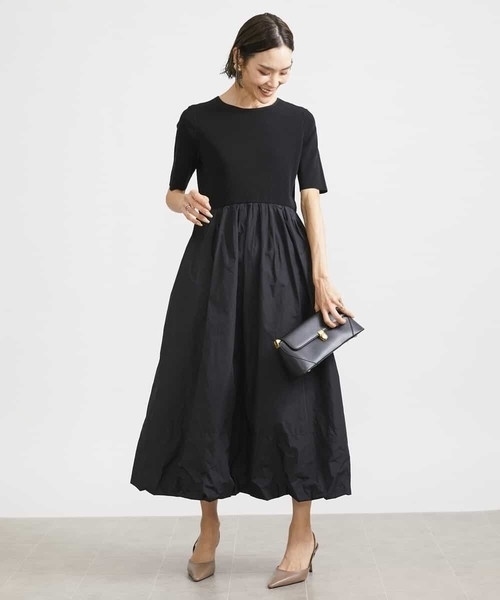 ◆トレンドのバルーンシルエットを大人可愛く◆ <デザイン・パターン> バルーンスカート部分はややボリュームを抑え広がりすぎないシルエットに仕上げました。トップスのニット部分は体のシルエットを拾いすぎないリブ仕様。コンパクトなトップスとボリュームを抑えたバルーンシルエットで甘すぎない「大人」なワンピースに仕上げました。40サイズは限定店舗展開です。 <素材> トップス部分 ピリングしにくいTEXBRIDとコットンのブレンド糸を使用。乾きの早いニットで頻繁にお洗濯したい季節に便利な素材です。 スカート部分 マイクロポリエステルの先染めによる高密度メモリータフタ。カラータテヨコ異色の糸を使用することで独特の風合いを表現しています。 <着こなしポイント> スニーカーに合わせてカジュアルに。パンプスと合わせてドレッシーな印象でもお召しいただけます。同素材[FMVDV10430]をご用意。セットで着用したスタイルもおススメです。 ---------------------------------- ・透け感:なし ・裏地:なし ・伸縮性:トップスニットは伸びあり ・光沢感:あり ・生地の厚さ:普通 ・あき:なし ・ポケット:あり ・ケア方法:洗える ----------------------------- モデル身長:172cm/着用サイズ:M ※環境により、色味が多少異なる場合がございます。予めご了承ください。商品の色味は、詳細画像をご参照ください。 MICHEL KLEIN(ミッシェルクラン)は、“シンプルとオリジナリティ” “ベーシックとトレンド” 巧みなバランスで自分らしさを表現し、ファッションを楽しむ。そんな洗練された大人の女性が求める スタイリッシュで着心地の良い服を提案するパリ発信ブランドです。 《お気に入り登録》でお得な情報をお届け 再入荷通知や残りわずか、お得なプライスダウンの情報をお受け取りいただけます。