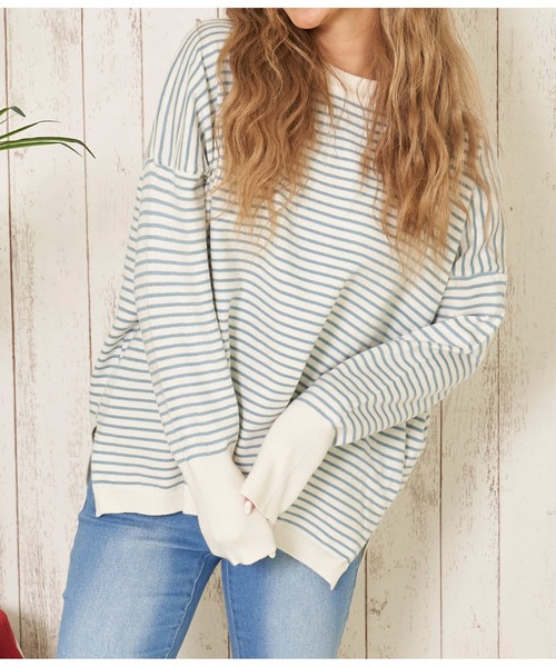 定番のボーダーを薄手のニットでこなれた印象に仕上げたトップス。 細めのボーダー柄なのでカジュアルすぎず女性らしい雰囲気で着ていただけます。 ゆったりしたシルエットとサイドのスリットで抜け感もプラス。 レーヨン混の柔らかい肌触りで着心地も抜群◎ ショートパンツからロング丈まで合わせるボトムを選ばないためデイリーに大活躍する1枚です。 ベーシックで合わせやすいブラックと爽やかなブルーの2色からお選びいただけます。 ※ストレッチあり※裏地なし ※生地のデザイン上、実際の商品と画像とで柄の配置が異なる場合がございます。予めご了承ください。 ※ニット素材のため、伸縮性があり記載しているサイズと若干異なる場合がございます。予めご了承ください。 ※商品のお取扱いに関しましては、商品に付属のアテンションカード、洗濯ネームをご覧ください。 ※モデル着用画像は光の当たり具合で色味が違って見える場合がございます。 ※商品の色味の目安は、色見本画像をご参照ください。 【お買いものをお楽しみいただく為に!】 ▼商品のお気に入り登録 完売カラーの再入荷通知や、ラスト1点の通知、セールの通知も受け取ることができます。 ▼ブランドのお気に入り登録 新商品や再入荷など、いち早くブランドのお得な情報を受け取ることができます。