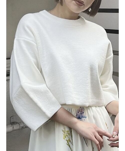 【2024 SPRING COLLECTION】 トレンド感のあるクロップド丈のニット 袖のボリューム感がポイント◎ ■アイテム ハーフミラノリブのしっかりとした編み地で袖の立体的なシルエットが特徴的なニット。 ベーシックでありながらシルエットで個性を出せる一着です。 ワイドサイズでゆったりと着れるのでシャツなどのレイヤードコーデもおすすめ◎ ■スタイリング ワイドパンツやスラックス合わせでシックに、 ロングスカート合わせでフェミニンに、 デニムのボトムス合わせでカジュアルにも着ていただけます。 合わせるボトムス次第で雰囲気を変えていただけます◎ クロップド丈が苦手な方はハイウエストのボトムス合わせで 着用しやすく、よりスタイルアップしてご着用いただけます。 ■スタッフ着用のコメント 身長:162cm / サイズ:F ミラノリブでしっかりとした生地感なので 着たときのシルエットがとても綺麗なニットです! クロップド丈なのでスタイルが良く見えるのも 嬉しいポイントです◎ -------------------------------------------- 伸縮性:あり 生地の厚さ:普通 透け感:なし サイズ感:ゆったり -------------------------------------------- 【知って得する便利機能◎ 】 ■商品のお気に入り登録 再入荷時、ラスト1点の時にお知らせします。 ■ブランドのお気に入り登録 新商品やお得な情報など、いち早くお得な情報をゲット! ぜひご活用ください。 ※着用画像はフラッシュの加減で実際の製品と色味等が異なる場合がございますので、 生地のズームアップ画像をご確認ください。 ※ご利用の端末画面の設定により実際の商品と色味が異なる場合がございます。