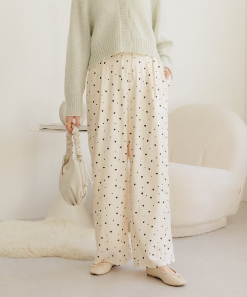 ■デザイントレンドのハート柄がとびきりキュートなルーズシルエットのパンツ♡以前発売されたloosely dot pantsが、ハート柄になって新登場♪甘くなりすぎない絶妙なサイズ感のハートで、コーデを大人かわいい雰囲気に仕上げてくれます。落ち感のある生地はシワになりにくく、お出かけにもおすすめ♪ゆるいシルエットがほどよい抜け感に♡デイリー使いやお出かけ、女子会にも◎!※オリジナルのプリント加工を施している為、生地の特性上白い線や擦れ・プリントの薄れがございますが不良ではございませんのでご了承下さい。シンプルなトップスとの合わせがおすすめです!パンツの遊び心あるハート柄と相性抜群♪■flower/フラワー「love&joy」をコンセプトに、商品に愛を込め、お客様に楽しんでいただけるような、ナチュラルでガーリーなアイテムを提案していきます。【お買い物を上手にお楽しみいただくためのPOINT2つ】◎ 購入ボタン横の ♡ (ハートマーク)をクリック! 完売カラーの再入荷通知、残り1点の通知、セールの通知を受け取れます。 (クリックまたはタップで商品のお気に入り登録♪)◎ ショップのトップページにある ♡ (ハートマーク)「お気に入りショップに追加」をクリック! 新商品や再入荷等、いち早くブランドのお得な情報を受け取れます。 (ブランドのお気に入り登録♪)