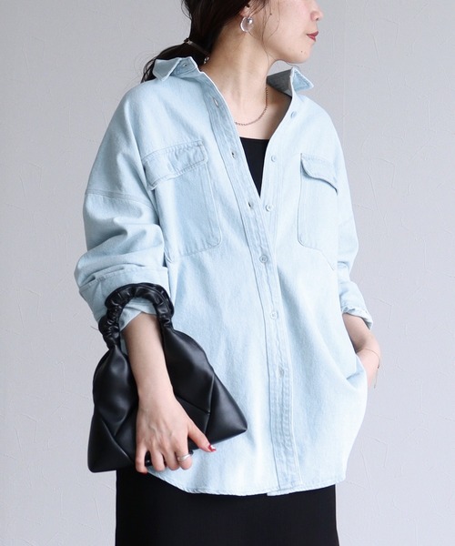 ■Point 季節を問わずオールシーズン使えるデニムのオーバーシャツ! こだわりのゆったりシルエットでこなれ感を演出します◎ 大人カジュアルに雰囲気をまとめたいときにコーデに統一感を出してくれます。 ■Deteil 程良くゆとりのあるサイジングで羽織りやすい◎ ちょうどいい厚みと軽さで、着心地の良さを意識したデザイン。 女性らしさを感じさせる色合いで、やわらかな印象を与えます。 ■Coordinate Tシャツ、ロングTシャツ、キャミソールなどインナー次第で季節を問わず着用できます。 ボトムスはパンツでもスカートでも、着回しがしやすい◎ ワンピースの羽織りとしても、かわいいです♪ ※【ブラック】の商品タグに【ライトグレー】と表記されてますが、商品画像と実際のお届けするカラーに誤りはございません。予めご了承くださいませ。 ※サイズは現物をスタッフが平置き採寸したものになります。 ※モデル着用写真は撮影環境により、多少実際のカラーと異なる場合がございます。 ※生産時期により若干の色ブレやサイズの変動が生じる場合がございます。 生地の素材や種類によってシワになりやすいもの、または同じ素材でも製造時期によって異なる場合がございます。予めご了承くださいますようお願いいたします。 ※ご注文いただいた予約商品のお届け時期の確認は、注文履歴ページより行えます。