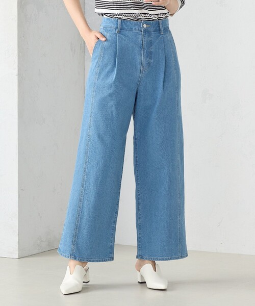 《デザイン》前身頃をデザイン的に切り替えたタックワイドパンツです。前身頃のデザイン切り替えがタテのラインを強調し、スッキリ足長のシルエットを作ります。太めでまっすぐに落ちるシルエットがモードなスタイリングを作ります。《素材》綿素材をベースに、ポリエステルをミックスして仕上げたストレッチデニム素材です。9.8オンスのしっかりした肉感を持たせつつレーヨン混でしなやかな風合いの素材感に仕上げました。《デニムシリーズ》同素材のジャケット(品番12-21BG04-204)、シャツ(品番12-15IG06-204)とセットアップとしてお召しいただけます。また、同素材のスカート(品番12-50FG05-204)もございます。……………………透け感:有り厚さ:中肉伸縮性:有り光沢感:なし裏地:なしポケット:有り洗濯方法:洗濯機……………………※画像の商品はサンプルとなりますので実際の商品と仕様、加工、サイズが若干異なる場合がございます。※こちらの商品はFIVE FOXes独自の採寸方法となっています。本サイトのサイズガイドと採寸方法が異なる場合がありますのでご了承ください。