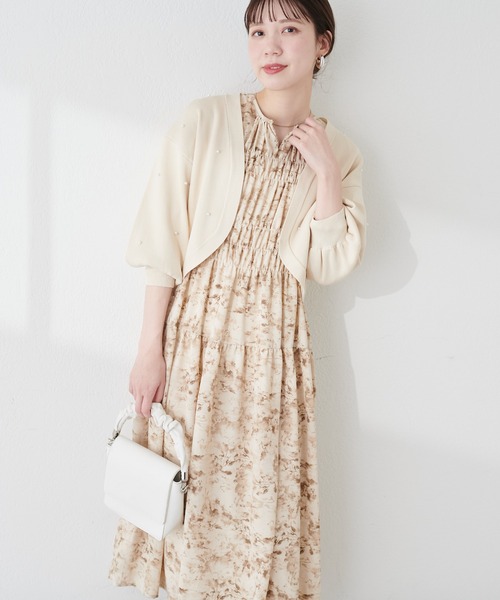 【2024SS natural couture】 たっぷりシャーリングの花柄ワンピース ■Design 見頃部分にたっぷりシャーリングの入ったワンピース。 前後2WAYでキーネックでもクルーネックでもお召しいただけます。 見頃部分のシャーリングと裾にむかってフワッと広がるシルエットでキレイなラインに。 花柄4色で春にぴったりワンピースです。 ■Styling 上品で華やかな雰囲気が魅力で、コーディネートに悩まずお召し頂ける級ワンピース。 ニットカーディガンやジャケットを合わせればロングシーズンお楽しみ頂けます。 足元はブーツ合わせはもちろん、コンパクトなヒールパンプスやフラットシューズを選ぶと大人レディスタイルが完成します。くれます。 ■Fabric さらっとふわっとな生地感。 =============== 透け感:ややあり ポケット:なし 裏地:あり 伸縮性:シャーリングあり 光沢感:なし 生地感:さらっとした生地感 =============== 【お気に入り登録でお得な情報がいっぱい】 ・「商品のお気に入り登録」で再入荷通知や、ラスト1点の通知、セール通知をいち早く受け取ることができます。 ・「ブランドのお気に入り登録」で新商品や再入荷など、お得な情報を受け取ることができます! ※店舗の入荷時期は商品によって異なります。 店頭の在庫状況につきましては各店舗にてお問い合わせください。 ※撮影時の光の関係で、画面上の画像と実際のお色とでは若干の色差が生じる可能性がございます。 また、ご覧いただいているモニター画面や、お使いのブラウザによっても、お色の違いがございますことをあらかじめご了承くださいませ。