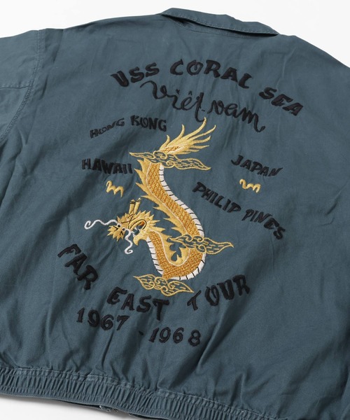 バックに配したスーベニア刺繍が特徴的なベトジャンです。程良いハリ感のあるコットンツイル生地を使用。特殊なユーズド加工により、古着風のアタリ感を表現。ヴィンテージライクな表情に仕上げました。ロンTなどのカットソーはもちろん、肌寒い時期にはプルオーバーパーカーとのレイヤードスタイルもオススメです。サッと羽織るだけで気軽にアメカジスタイルが楽しめるアイテムです。オーバーサイズな着こなしができる、ゆったりとしたシルエット。メンズだけでなく、レディースにもオススメなユニセックスアイテムです。-------------------------シルエット:ワイド生地の厚さ:中肉透け感:なし伸縮性:なし裏地:なしケア方法:洗濯機洗い可-------------------------●『KRIFF MAYER』(クリフメイヤー)General Wear for FAMILY CAMP!!家族で着られるアメリカンカジュアルをテーマに誕生したクリフメイヤー。より家族が生き生きと暮らすには、シティ⇄ネイチャーのボーダーをなくす必要があると感じています。その一つのキーとなるのが、「ファミリーキャンプ」だとクリフメイヤーは思うのです。お父さんが「今週末はキャンプに行こっか」と言えば、「釣りやってみたい!それと川遊びも!」「わたしは焚き火でマシュマロ焼く!」と子供たちが嬉しそうにしている、そんな光景が日常に溢れるようにしていきたい。クリフメイヤーに着替えたら、それは待ちに待った週末の合図。家族との特別な時間を当たり前に。クリフメイヤーの「General Wear for FAMILY CAMP!!」にはそんな想いが込められています。