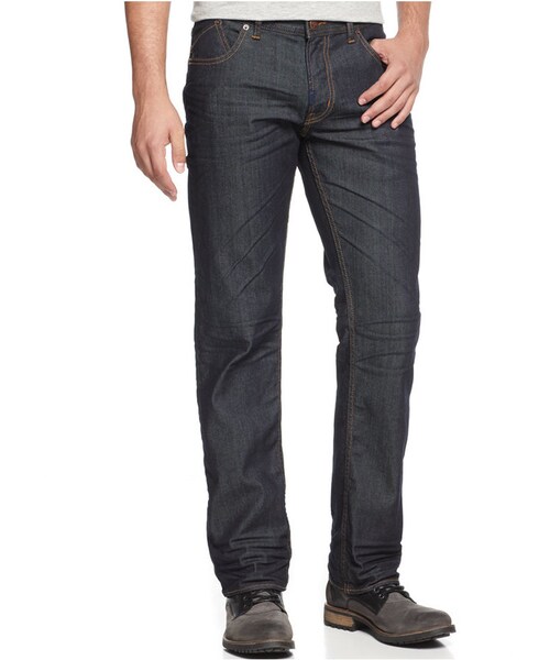 Upgrade your casual wardrobe with sleek style, courtesy of these tapered jeans from LRG. Cotton/polyester/spandex Machine washable Imported LRG men's jeans Belt loops Zip fly with button closure Five-pocket styling Contrast topstitching throughout Tapered legs