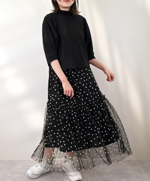 チュール素材が魅力のドットフロッキーギャザーフレアスカート!これ一枚で今季らしいこなれ感を演出します。大人女子の可愛さを引き立たせるマストアイテムです。・軽やかな印象のチュール素材・ウエストゴム仕様でラフな履き心地・デートや女子会スタイルにもおすすめ