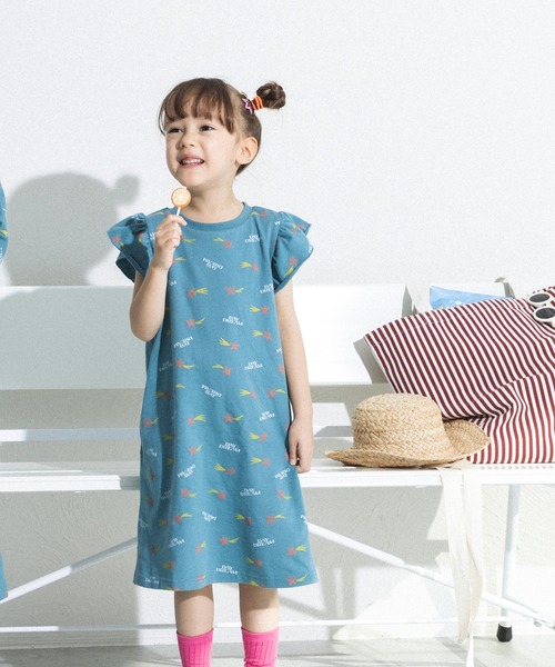 【しなやかコットン100】オリジナル総柄プリントが施された肩フリルワンピースが登場しました。シンプルなシルエットのワンピースにポイントでついた肩フリルが女の子らしさをプラスしてくれます。両サイドにポケットが付いているのも嬉しいポイント。【スタイリング】ポップなオリジナル総柄が印象的なので、一枚ではもちろん無地のレギンスとスニーカーに合わせてカジュアルに着ていただきたいワンピース。同じ総柄のユニセックスセットアップも展開しているので男女でリンクコーデも楽しめるアイテムです。【ポケット】あり(両サイド)【伸縮性】少しあり【透け感】透けない【クリーニング】洗濯機洗い可(ネット使用)【裏地】なしモニター・環境等により実際の商品と色味が多少異なって表示される場合がございます。 また、生産時期により色味が若干異なる場合がございます。予めご了承ください。