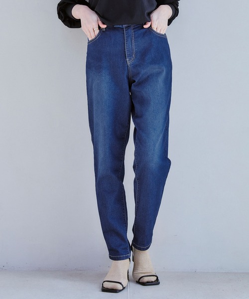サスティナブル素材を使用した、地球にやさしいストレッチデニム【デザイン】・ビスコース繊維を使用し、環境への配慮を重視したデニムパンツ。・股上をすっきり浅めに設計したテーパードデザイン。・細すぎず、ワイドすぎない絶妙なシルエットで抜け感のあるアイテムです。・ストレッチを効かせ、はき心地快適デニムに仕上げました。・バックポケットはヒップアップ効果があり、後ろ姿もきれいに見えるのが嬉しい。【コーディネート】・シャツやブラウスなどとのきれいめカジュアルスタイルにまとめるのがおすすめ。・足元は、足の甲や足首をみせて抜け感をつくるとすっきりとこなれた印象に。【サイズ展開】61cm(Sサイズ相当)64cm(S~Mサイズ相当)67cm(Mサイズ相当)70cm(M~Lサイズ相当)モデル身長:162cm/165cm着用サイズ:64cm【洗濯・取り扱い】洗濯:ネットを使用して洗濯可能アイロン:アイロン可乾燥:タンブル乾燥不可※染料の特性上、汗や雨で湿った状態、または摩擦により白や淡色の衣類、バッグ、靴、ソファー、車のシート等に色が移ります。また白や淡色の衣料と一緒に洗うと色が移ります。あらかじめご了承ください。-------------------------------------透け感:なし伸縮性:あり厚み:普通--------------------------------------※撮影時のライティング、ご覧になっているモニター・PC環境により実際の商品と色味が異なって見える場合がございます。ご了承の上お買い求め下さい。