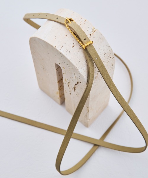 ボトムとなじむやわらかさが特徴の細ベルト【素材】サボテンを原料に作られたサスティナブルレザー【デザイン・シルエット】ロープのようにツイストさせたバックルが極細ベルトのアクセントに。細く長く落ちるシルエットが印象的。【カラー】ブラック、ベージュの2色展開【掲載情報】BAILA WEB掲載 emmaさん着用※画像の商品はサンプルです。実際の商品と仕様、加工、サイズが異なる場合がございます。※撮影場所やライティング、お使いのモニター環境によって色の見え方が異なる場合がございます。※商品のカラーは画像の色味をご参照ください。動画は仕様説明のため、色味が実物と異なる場合がございます。