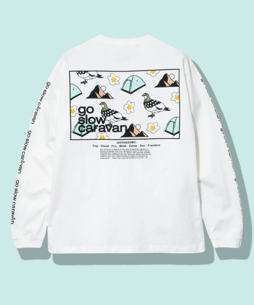 ☆go slow caravan☆ USA/C スクエアLOGO バックプリント ロングスリーブTEEバックにゴースローキャラバンのイメージグラフィックがプリントされた、人気のLOGOロンTEEが登場。・ホワイト / 登山 ・ブラック / バナナ ・ミント / 猫いっぱい ・バイオレット / ウーパールーパー■USA COTTON 天竺go slow caravanオリジナルの定番カットソー素材。米綿ならではのシャリ感と柔らかさもある丈夫な生地です。程よい厚みでデイリーウェアに最適です。※着用、お取り扱いの際は、商品についている品質表示とアテンションタグを必ずご確認下さい。お買い物をさらにお楽しみ頂くためにブランドや商品のお気に入り登録がおすすめです☆新商品・再入荷通知、ラスト1点通知、セール通知などなどお得な情報を受け取ることが出来ます。