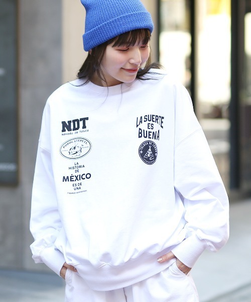 メキシコにちなんだロゴを並べたスウェットプルオーバー■デザインメキシコの地名や火山の名前などをシンプルなロゴに仕上げプリントにしました。単色でコーディネートしやすく、クールな印象に。前と後ろで丈の長さを変えていて、ヒップはしっかりと隠れるのが嬉しいポイントです。ぽてっと少しボリューミーなシルエットが女性らしい雰囲気☆■サイズ感レディースフリーサイズゆったりとしたトレンド感のあるオーバーサイズ。■素材感ロングシーズン着回しやすい裏毛スウェット。軽やかさもあり、ロングTシャツ感覚での着用も可能です。■スタイリングカーゴパンツと合わせたストリートスタイルが今っぽい着こなし。リブタートルやシアーハイネックなどのアイテムとのレイヤードコーデもおすすめです◎■カラーブラック/グレー/ホワイト■洗濯表示洗濯機可---------------------------------透け感:やや透ける(ホワイトのみ)伸縮性:あり裏地 :なし光沢 :なし生地の厚さ:薄手ポケット:なし---------------------------------【TITICACAのお買いものをお楽しみいただくために!】▼商品のお気に入り登録完売カラーの再入荷通知や、ラスト1点の通知、セールの通知も受け取ることができます。▼ブランドのお気に入り登録新商品や再入荷など、いち早くブランドのお得な情報を受けることができます!