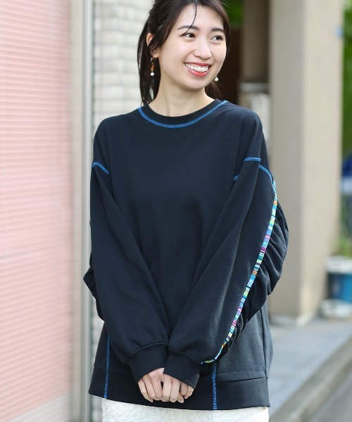 印象的なギャザーの袖で差が付くプルオーバー■デザインくしゅくしゅっとしたスリーブが他にはない、個性が光るデザイン。背中から袖に施された、カラフルな民族感漂うラインが目を惹きます☆アクセントになったビビットカラーのステッチは更に華やかさをプラス!シンプルながらもカラフルな印象を与える1枚になっています。■サイズ感レディースフリーサイズたっぷりとした身幅で着心地快適。ストンとしたストレートシルエットになっています。■素材感長く着られる裏毛スウェット素材を採用。■スタイリング幾何学柄などスカートと合わせて、エスニックコーデを存分に楽しんで!シンプルなデニムパンツやカーゴパンツと合わせた、カジュアルな着こなしもおすすめです。■カラーブラック/ブルー/ライトベージュ■洗濯表示洗濯機可---------------------------------透け感:透けない伸縮性:あり裏地 :なし光沢 :なし生地の厚さ:普通ポケット:なし---------------------------------【TITICACAのお買いものをお楽しみいただくために!】▼商品のお気に入り登録完売カラーの再入荷通知や、ラスト1点の通知、セールの通知も受け取ることができます。▼ブランドのお気に入り登録新商品や再入荷など、いち早くブランドのお得な情報を受けることができます!