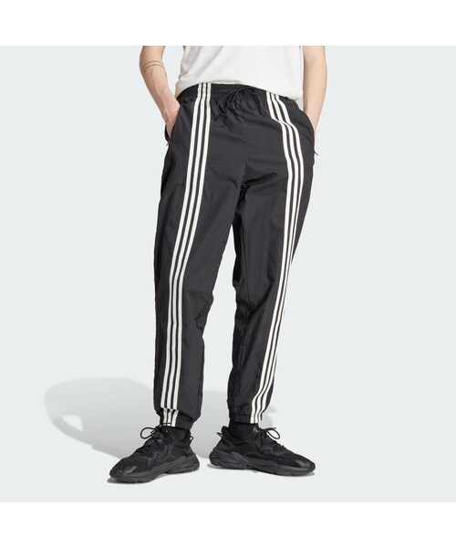 週末のリラックスタイムにも、街歩きにも重宝するアディダスパンツ。脚まわりをルーズにしたリラックスフィットの作りで、スポーティーさを残しながら、快適な着心地に仕上げている。アイコニックなスリーストライプスを脚のフロントにあしらった、伝統にとらわれない斬新なデザイン。 リサイクル原料を100%使用した素材で作られたアイテム。