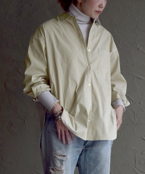 ■大人にカラーを楽しめるマルチストライプシャツマスキュリンなベーシック感と一緒に大人にカラーを取り入れられるシャツが登場。ゆったりと着ていただけるサイズ感と立体感あるシルエット、大胆に深めに入れた丸みを帯びたシャツカットデザインが着こなしに抜け感をプラスしてくれます。首元を開けて少しフェミニンにも、ボタンを全て留めてプレッピーな印象でも。着崩したきこなしも楽しんでいただけます。ジャケットやカーディガンのインナーとしても羽織りとしても、一枚でもロングシーズン楽しめるベーシックシャツです。 洗濯:手洗い可※アイロンの際はあて布をご使用ください※お洗濯の際はネットをご使用ください▼お洗濯及び着脱時に、アクセサリーやベルト、周囲の壁など表面の粗いものとの摩擦や引っかかりにご注意くださいませ。