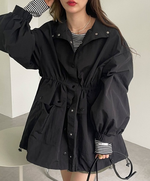 軽量で手軽にサラッと羽織れる、 スタンドカラーのマウンテンパーカーが入荷しました♪ 表面に適度なハリ感とシワ感のある、 シャカシャカとしたナイロン素材のアウターは、 サラッとしたシャツ感覚の着心地が◎ ゆるっとしたオーバーサイズシルエット、 ボリュームのある袖でこなれ感のある印象に。 首元を閉じてトレンドのスタンドカラーとしても、 前開けで抜け感のあるビッグカラー風にも着られる♪ 大きめのポケットもポイントです。 ウエストや裾のドローコードで シルエットの変化も楽しめて、コーデの幅も広がるデザインです。 軽量で持ち運びもしやすく、気温の変わりやすい時期に 体温調節できるライトアウターとしておすすめです! ※裏地なし ※撮影時のライティング、ご覧になっているモニター・PC環境により 実際の商品と色味が異なって見える場合がございます。 ご了承の上お買い求め下さい。 素材: ナイロン100% ≪備考≫ 伸縮性:なし 透け感:なし 生地の厚さ:やや厚手 肌ざわり:さらっとしている その他: 生産地:中国 洗濯機:可 ドライクリーニング:不可 ウェットクリーニング:可