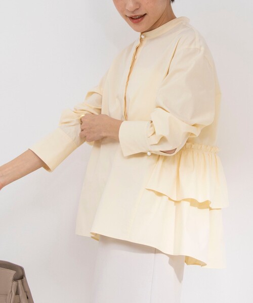 ◇24SS◇ NOLLEY'S sophi ◆Point ・後ろのペプラムデザインが華やかなブラウス ・ソフトで膨らみのある上質なタイプライター素材を使用 ・ポリエステル混のシャツ素材のため、シワにもなりにくいのが魅力 ・襟のパール釦が顔回りを華やかに見せてくれるポイントに ・パンツやタイトスカートスタイルをアップデートしてくれる主役級アイテム ●お取扱い上のご注意● 末永くご愛用頂くために、アテンションタグを必ずご確認の上、着用又はお取り扱い下さい。 ※手洗い可 気になる商品は、お気に入り登録がオススメです! クーポン情報、入荷情報が、通知されるようになります。 ※店頭及び屋外での撮影画像は、光の当たり具合で色味が違って見える場合があります。商品の色味は、スタジオ撮影の画像をご参照下さい。 ※商品画像に関しては出来る限り忠実に表示出来るよう努めておりますが、お客様がご利用のモニターの設定及び特性により、実際の商品と比較し色味に若干の誤差が生じる場合があります。 ※画像の商品はサンプルとなりますので実際の商品と仕様、加工、サイズが若干異なる場合がございます。