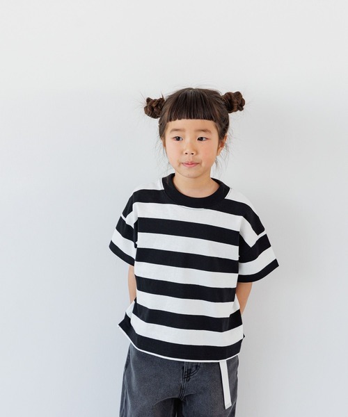 ■デザイン■ 夏の定番アイテム、ボーダーTシャツ。 太いピッチがインパクトがあり、形はベーシックだけど1枚で様になる優秀なアイテム。 カラーの組み合わせもローリーズファームキッズらしい、ありそうでない組み合わせがおすすめのポイントです! ※屋外の光や照明の当たり具合で、実際の商品の色味とカラー別画像の色味に違いが発生する場合がございます。 商品の色味は後方の寄り画像をご覧ください。