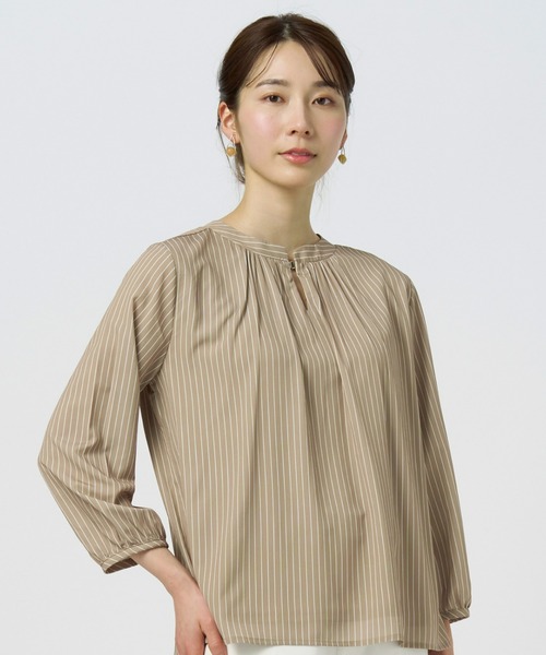 普段使い、セレモニー、ビジネスシーンなど どんなシーンでも着回し可能なブラウスです。 シワになりにくく、扱いやすいポリエステル 混合素材でヘビロテで使いやすいアイテム。 合わせるボトムス・シーンによって着こなしの 変化を楽しめる、前後どちらでも着用できる2WAY仕様。 頭から被ってフックを留めるデザインなので 後ろで留めるのが苦手な方は前で留める着こなしがオススメ。 着用方法で前後を選べるのも嬉しいポイントです。 【BRICK HOUSE by Tokyo Shirts / ブリックハウス バイ トウキョウシャツ】業界トップ水準を誇るノーアイロンの形態安定加工は自宅で洗濯可能でお手入れ簡単!高度な縫製技術を用いた高付加価値シャツでありながら選ぶことを気軽に楽しめます。ベーシックから多様なデザインまで幅広いバリエーションで豊富なサイズ展開で、ディテールの隅々にまで織り込んで一枚一枚丁寧に仕立てられたシャツです。