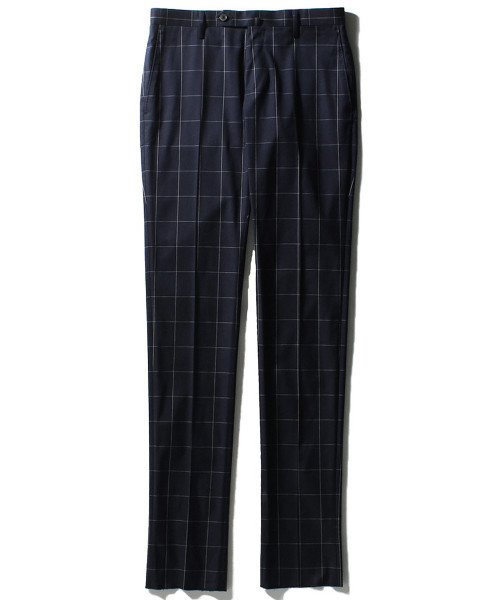 EDIFICE(エディフィス) 英国調のウィンドウペン柄を取り入れたスラックスは上品で洗練されたイメージを演出してくれます。落ち着きのあるシックな色合いと上質な仕立て、身体に吸い付くようなフィット感を追求したテーパードシルエットはジャケット×パンツスタイルのバリエーションとして揃えておきたいアイテムです。