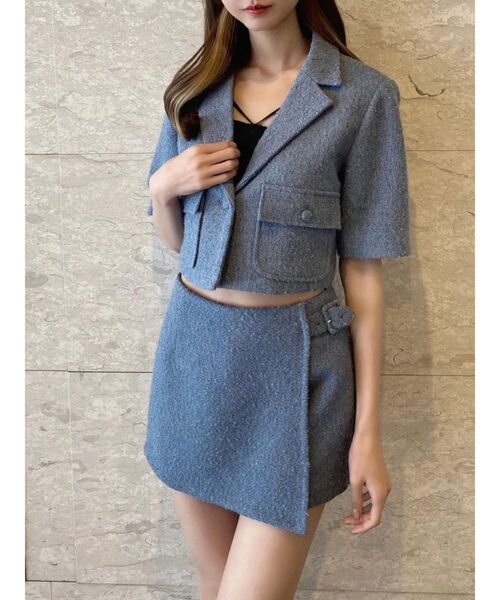 <商品POINT>・ショート丈なので、ウエスト位置が高く見えスタイルアップ効果◎・上品なツイード素材を使用しているので大人フェミニンな印象に♡・同じ素材のベルテッドスコートとセット着用することでトレンド感のあるコーデが完成します。・デニムパンツやスラックスと合わせたカジュアルコーデもおすすめ。▼セットアップアイテムはこちら【品番を検索してご購入いただけます】・ベルテッドスコート【81929650】----------------------------------------------♡商品のお気に入り登録完売カラーの再入荷通知や、ラスト1点、セールの通知をお知らせ致します。♡ブランドお気に入り登録新商品や再入荷など、いち早くブランドの情報を受け取ることができます。----------------------------------------------※サイズは、実寸サイズを測っているため多少誤差がでる場合があります。※重量は目安として、参考にして下さい。※商品画像は着用イメージです。 光や角度により、実物と色味が異なる場合がございます。 商品の撮影はサンプルで行っている為、カラーやサイズ等に変更がある場合がございます。 ご覧のモニター環境により実際の商品と多少色味が異なって見える場合がございます。 ご了承ください。