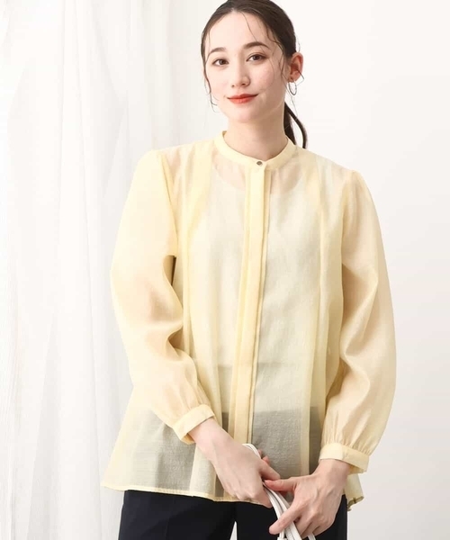 ヘルシーな肌見せが適う 羽織りとしてもおすすめなシアーシャツ ■デザイン ナチュラルなシアー感が程よい肌見せが適い露出が苦手な方でも挑戦しやすいシャツブラウス。身頃はややゆとりがあり、着丈も短すぎず、羽織りとしても着用可能なので、紫外線対策や冷房対策にもおすすめです。 ■素材 透け感のあるシアー素材を使用。ナチュラルでややシャリみのある素材です。 ■コーディネート 透け感はありますが、そこまで強くないので、タンクトップやキャミソールなどと合わせてもヘルシーで品良く着こなせます。いつものコーデにぱっと羽織るだけで様になり、大人の抜け感のあるコーデにブラッシュアップしてくれます。羽織りとしてだけでなく、一枚でシンプルな着こなしも◎ #シアートップス#シアーシャツ -------------------- 洗濯表示:洗濯機洗い可 透け感:あり 裏地:なし 伸縮性:なし 生地の厚さ:やや薄手 -------------------- ※自然光・照明の関係、パソコン・スマートフォンなどの環境により、実際と色味が違って見える場合がございます。予めご了承ください。商品の色味は、詳細画像をご参照ください。 ※サンプルでの撮影となるため、実際にお届けする商品と仕様やサイズが異なる場合がございます。 ▼カラー番号表記 レモン(20)、ミントブルー(30)、ホワイト(90)