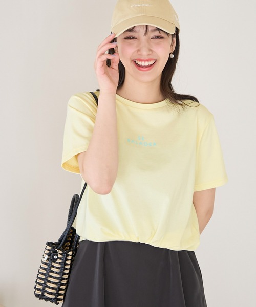 春らしさ満点のマカロンカラーTシャツが到着。【素材感】 ・廃棄予定の衣料品や残反等を回収し、新たに繊維にするサーキュラーエコノミーのRENU(レニュー)素材を使用。 ・肌にあたる側がポリエステルなので汗が表面に響きにくく、さらっとした感覚で着られる。 【デザイン・シルエット】 ・ボディに合わせたカラーによる、ロゴプリントがポイント。 ・ワイドシルエットで、軽快なクロップド丈。 【カラー】 ・カラーによってロゴが異なります。 オフホワイト(15):Je pars en Picric cet e'te' <ロゴの意味>この夏ピクニックを ベージュ(27):Bonnes Vacances! <ロゴの意味>良い休日を ブルー系(45):toujours heureux <ロゴの意味>いつも幸せ ピンク(63):Partir en voyage <ロゴの意味>旅行する クリーム系(85):se balader <ロゴの意味>ブラブラする 【スタイリングポイント】 ・ハイウエストボトムに合わせて、バランス良く着こなして。 ・長めの着丈のTシャツやタンクトップに重ねてもおしゃれ。 ・ホワイト系カラーのボトムスが好相性。 ・トートバッグ(品番:GIX14130)と同じロゴを使用しているので、お揃いで持つにもおすすめ。 ----------------------------- 裏地:なし 透け感:ホワイト(10)はややあり 伸縮性:ややあり 生地感・厚さ:普通 季節:春・秋 ----------------------------- ※撮影時の光、お使いのモニター環境によって色の見え方が違う場合がございます。 ※モデル身長:163cm 着用サイズ:38