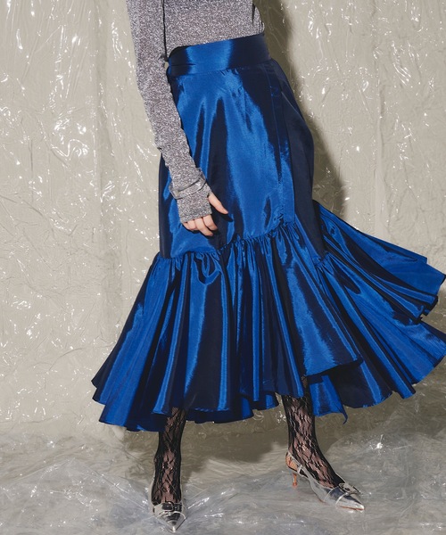 ◆贅沢なフレア分量で歩く度に揺れるエレガントなスカート◆ 【Design】 今季トレンドの光沢感のある素材でデザインしたイレギュラーヘムスカート。 シャカシャカとしたグロッシーな生地でフレア分量をしっかり出しつつも軽やかさも◎ ウエスト後ろ側はゴムシャーリングになっているので伸縮性があり、しっかりくびれも作ってくれます。 【Styling】 足首がきれいに見えるイレギュラーヘムなので、パンプスやサンダル合わせはもちろんスニーカーとも相性◎ 無地のスカートでも華やかに見えるグロッシーな素材感なので、シンプルなカットソーやシャツ合わせでも映えるスタイリングに。 春夏はもちろん秋冬も着用いただける生地なのでオールシーズン活躍するアイテムです。 【サイズ補足】 Sサイズ 着丈(CBベルト下~裾):83cm ウエスト:60cm~(後ろ側ゴムシャーリング) Mサイズ 着丈(CBベルト下~裾):87cm ウエスト:64cm~(後ろ側ゴムシャーリング) ・・・・・・・・・・・・・・・・・・・・・・ 透け感:無し(ホワイトのみ多少の透け感あり) 裏地:有り 伸縮性:無し(ウエスト後ろ側ゴムシャーリング) 光沢感:有り 生地の厚さ:普通 ・・・・・・・・・・・・・・・・・・・・・・ ▼商品のお気に入り登録 お気に入りアイテムの値下げ・再入荷・在庫1点などの通知を受け取ることができます。 ▼ブランドのお気に入り 登録新商品や再入荷、セール、クーポン配布などお得な情報を受け取ることができます。 ※画像の商品はサンプルです。 実際の商品と仕様・加工・サイズが若干異なる場合がございます。 予めご了承くださいませ。 ※撮影場所やお使いのモニター環境により若干お色味が異なる場合がございます。 ※製品によっては染料の特性上、湿った状態や汗をかいた状態での長時間の放置、または摩擦により、他のものへ色移りする恐れがありますので、着用時にはご注意下さい。 ※風通しがよく、湿気の少ない日の当たらない場所で保管して下さい。 ※また製品加工上、お手元に届く際に匂いが生じる場合がありますが、 ご使用を続けていく事により匂いは軽減されます。