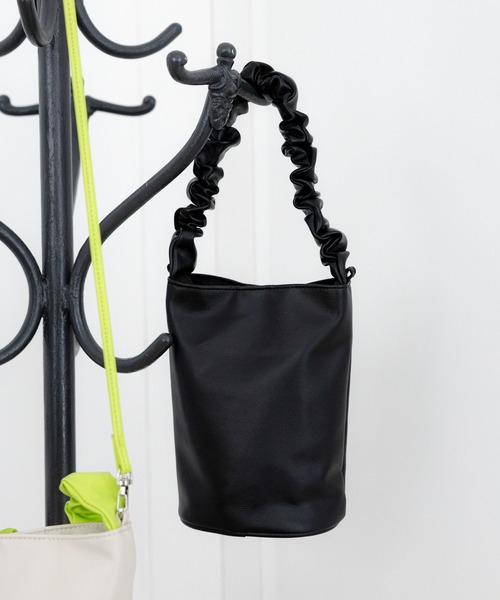 トレンドのギャザーを取り入れたミニバッグ。ショルダーを取り外せる2WAY仕様になっております。ハンドル部分のキャッチーな春カラーがデザインのポイント。