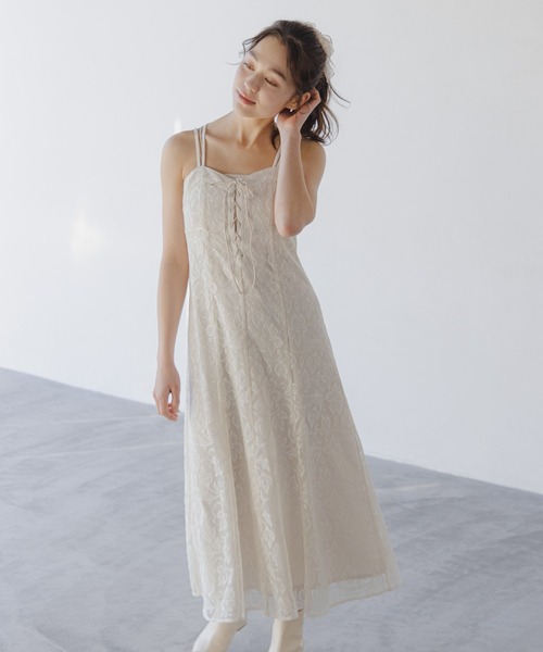 ーーー同素材のジャケットとセットアップも楽しめる♪シルエットにこだわった大人女子のキャミワンピースーーー■point・切り替えラインにこだわり、女性らしいシルエット・フロントのレースアップでフェミニンさをプラス・アジャスター付き&ギャザーゴムで着心地も楽ちん♪・レースと無地のアソート展開■styling同素材のジャケットと合わせたセットアップでの着こなしが一押し!ブラウスやカットソー、ニットなど様々なトップスに合わせやすいのでオールシーズン着ていただけます♪Tシャツをインしてカジュアルダウンな着こなしもおすすめ◎※屋外の光や照明の当たり具合で、実際の商品の色味とカラー別画像の色味に若干の違いが発生する場合がございます。 詳細画像と併せてご確認の上、ご注文いただきますようお願い致します。【INFORMATION】■商品のお気に入り登録完売していても再入荷時に再入荷通知を受け取ることができますので、是非ご登録ください!■ブランドのお気に入り登録新商品や再入荷などの情報を受け取ることができますので、是非ご登録ください!