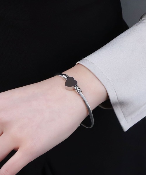 blackdia ocean(ブラックダイヤ オーシャン) ハート ワイヤー バングル です。 ハートモチーフがメタルカラーに艶めく大人可愛い印象のブレスレット。 ワイヤーバングルの辛めなデザインとハートの甘めの組み合わせがトレンド感のある手元を演出。 Tシャツやデニムのカジュアル系はもちろん、フェミニン系フォーマル等、様々なファッションコーデのアクセントにオススメ。 形状記憶型デザインなので形がくずれにくく、留め具なしで着脱が簡単なのもポイント。 素材は金属アレルギーを起こしにくいステンレスを使用しており、金属アレルギーの方でも安心してご利用いただけます。 金属アレルギー対応のステンレス素材は、錆や傷がつきにくく、お風呂やプールなどの水辺でも外すことなくお使いいただけるので、普段使いにも最適。 飽きのこないおしゃれなデザインなので、彼女や家族、友人へのプレゼントなど、ギフトにもオススメなアクセサリーになります。 ≡《お気に入り登録》でお得な情報がいっぱい ≡ ・「商品のお気に入り登録」で再入荷通知や、ラスト1点の通知、セール通知も受け取ることができます。 ・「ブランドのお気に入り登録」で新商品や再入荷など、お得な情報を受け取ることができます!