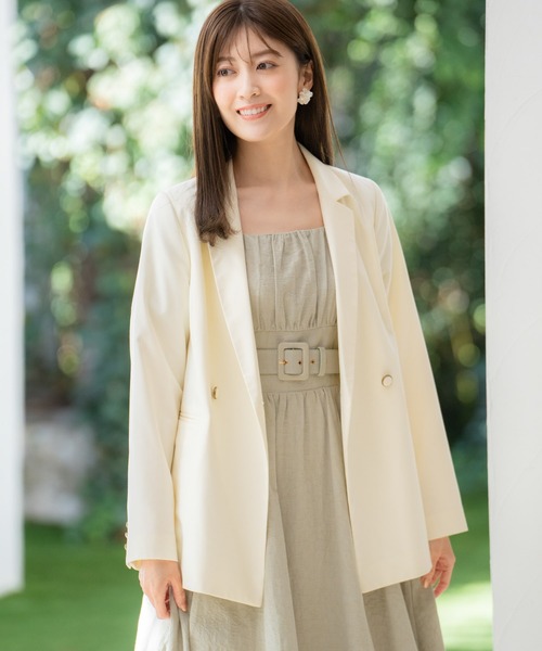 ベーシックでありつつ存在感のあるダブルテーラードジャケット。 メリハリのあるサイズ感が、かちっとしすぎず、こなれた印象にしてくれます。 袖ぐりにゆとりがあるので、ニットなどの少し厚手のトップスも中に着て頂けます。 ワンピース合わせでフェミニンな装いにも、大人カジュアルに纏ったスタイリングなど幅広く合わせて頂ける1着です。 ■商品特徴 裏地:あり 生地の厚さ:普通 透け感:なし 伸縮性:なし ポケット:あり(前) ファスナー:なし ※不良商品・配送不備以外の返品交換はお受けできませんので予めご了承ください。 ※画像の商品はサンプルです。実際の商品と色味、仕様、加工、サイズ等が若干異なる場合がごさいます。 ※商品の色味・仕様は、商品単品トルソー画像をご参照下さい。 ※撮影時の照明やお使いのパソコン・スマートフォンの設定等により画像の色が実物と異なって見える場合がございます。予めご了承ください。 ★【お気に入り登録】でお得にお買い物★ ■商品のお気に入り登録 完売カラーの再入荷通知や在庫残り1点の通知、値下げの通知を受け取ることができます。 ■ブランドのお気に入り登録 新商品や再入荷情報、クーポン配布などのお得な情報を受け取ることができます。