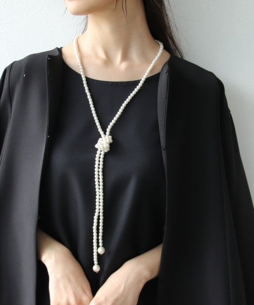 ■ムスビデザインのパールネックレス■ ボリューム感のある結びタイプのロングネックレス さっと身に着けるだけでシンプルなコーディネートがぐっと華やかに♪ ネックレスが作るVラインが胸元をすっきり見せてくれます◎ パーティーやセレモニースタイルにおすすめのネックレスです♡ 【結婚式/パーティー/フォーマル/デイリー/卒業式/入学式/セレモニー】 ▼商品画像について▼ ※撮影場所やお使いのモニター環境により実際の商品と若干お色味が異なる場合があります。 ======================= 《お気に入り登録》でお得な情報がたくさん! ▼商品のお気に入り登録▼ ♡をクリックしてお気に入り登録をすると 再入荷通知やラスト1点の通知をお知らせします。 ▼ブランドのお気に入り登録▼ お気に入りショップに追加していただくと、 いち早く ThreeFourTime のお得な情報・新入荷情報を 受け取ることができます。 =======================