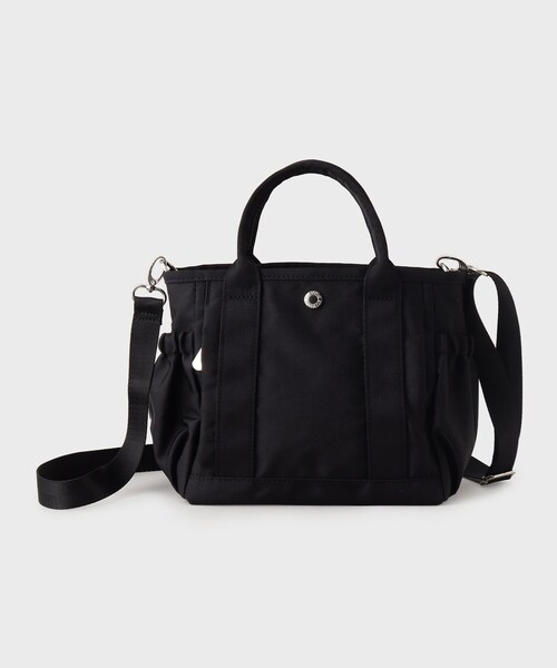 デイリー使いに嬉しい!撥水加工を施した2WAY仕様の軽量ミニトートバッグ 【デザイン】 ・サイドポケットにギャザーをデザインしたシンプルなミニトートバッグ ・取り外し可能なロングショルダー付きで、2WAYで使えるのが嬉しいポイント ・本体前後に仕切られたポケットがあり、荷物が仕分けやすく、中央部分はファスナー付きなので防犯面も安心 ・外側サイドポケットは500mlペットボトルや折り畳み傘などの収納に便利で、本体中央の外側ファスナーポケットや背面ポケットはスマートフォンやカードケースなど小物の収納に便利です ※ポケット数:9 (うち、外ポケット:3、外ファスナーポケット:1、内ポケット:4、内ファスナーポケット:1) 【素材】 ・デイリー使いに嬉しい撥水加工を施したナイロン素材を本体に使用しています。 ・内側に使用している裏地は、ペットボトル由来のリサイクル生地を使用しています。 ・カラーによって付属パーツのカラーを変えています。 (#012グレー/#019ブラック:シルバーニッケル、#051ライトベージュ:ゴールド) 【撥水加工】 ・この製品は、表面についた水分をはじきやすい性能を持っています。 ※完全防水ではありません。 ※縫製部分から水が浸入することがあります。 ※この効果は永久的なものではありません。 店舗へのお問い合わせ商品番号:C71-18102 ●製品寸法: 00:高さ19cm 幅(上部)25cm 幅(下部)21.5cm マチ12cm 持ち手上がり8cm 付属ショルダー対応サイズ61~114.5cm 備考:重量:約345g