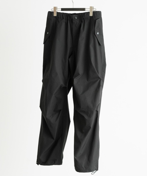 パラシュートパンツ特有のボリューム感は残しつつ、股上をやや浅めに設定することで、カジュアルながらすっきり見えする一着に。 こなれ感を演出してくれるゆったりとしたシルエットに加え、穿き心地を高めてくれる4WAYストレッチ素材を採用。 股上を浅くし、すっきりと履いていただけるので、様々なトップスとバランス良く合わせていただけます。 フラップポケットや膝部のタックデザイン、裾にはアジャスターを付けることでミリタリーテイストをプラス。 実用性が高い、撥水、イージーケア、UVカットの機能も併せ持ち、デイリーユースや外遊びなどシーンを選ばず活躍してくれます。 【2024 Spring/Summer】【24SS】 ※この商品は、はっ水加工をしていますが、水滴などをつけたままにしておくとあとが残ることがあります。ご注意ください。この加工の効果は永久的なものではなく、着用や洗濯を繰り返すと、効果が低下します。ご了承ください。 ※商品画像は、光の当たり具合やパソコンなどの閲覧環境により、実際の色味と異なって見える場合がございます。予めご了承ください。 ※商品の色味の目安は、商品単体の画像をご参照ください。 ▼お気に入り登録のおすすめ▼ お気に入り登録商品は、マイページにて現在の価格情報や在庫状況の確認が可能です。 お買い物リストの管理に是非ご利用下さい。 素材感 透け感 : なし 伸縮性 : ややあり 裏地 : なし 光沢 : なし ポケット : あり