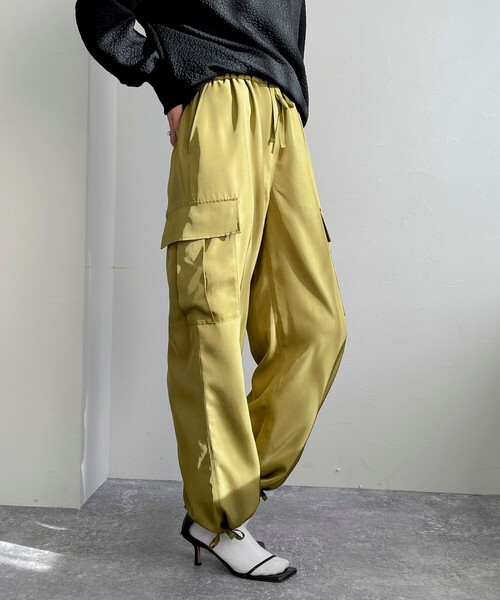 ◇fredy emue◇【2024 SS】すっきりシルエットで定番のベイカーパンツ●point・大人カーゴパンツが春素材で登場!・今回はツイル目の光沢素材を使用しています・程よい光沢感が大人カジュアルスタイルにぴったりのアイテムです・とろみのある素材感が体型を拾わず、スッキリと着用いただけます・ウエストはゴムになっており、着脱も簡単!・柔らかい素材感で履き心地も良いのでこれからの春夏シーズンにぴったりです・綺麗目や甘目デザインのトップスとも好相性◎・程よくルーズな、抜け感のあるカジュアルコーデにピッタリな1本です透け感:なし裏地:なし伸縮性:なし光沢感:あり洗濯:手洗い可●お取扱い上のご注意●*商品を長くご愛用していただきたいため、アテンションタグがある場合は必ずご確認の上、着用又はお取り扱い下さい。*画像の商品はサンプルとなりますので実際の商品と仕様(主にファスナー・釦等の付属品)、加工、サイズが若干異なる場合がございます。*店頭及び屋外での撮影画像は、光の当たり具合で色味が違って見える場合があります。商品の色味は、スタジオ撮影の画像をご参照下さい。*商品画像に関しては出来る限り忠実に表示出来るよう努めておりますが、お客様がご利用のモニターの設定及び特性により、実際の商品と比較し色味に若干の誤差が生じる場合があります。*製品洗い加工の商品は、多少の歪み、シワなどが見られたり、風合いやサイズ等が1枚1枚異なります。汗や雨等で濡れた時や、摩擦により色落ちし、他の衣料を汚すことがありますので(特に濃色のもの)ご注意ください。◇商品のお気に入り登録◇【お気に入りに登録 ♡マークをクリック】を是非ご活用ください! 再入荷の通知や、ラスト1点の通知、セールの通知がいち早く届きます。◇ブランドのお気に入り登録◇新商品や再入荷など、いち早くブランドのお得情報が届きます。
