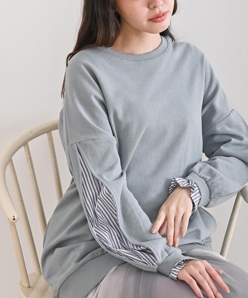 ☆2026/SS 再入荷☆ 異素材切替えの袖がポイントになったスウェットトップス 袖からのぞく布帛地がコーデを盛り上げてくれるトップス。 袖口からものぞかせてレイヤード風デザインになっています。 ラフに着られるコットンミックスのスウェット地。 カジュアルコーデにぴったりなアイテムです。 長めのチュニック丈で体型カバーも◎。 ※再入荷の場合、生産時期が異なるため色・素材・サイズ・デザイン等多少異なる場合がございますので予めご了承ください。 裏地なし 伸縮性弱 薄手 サイドポケットあり 織キズやだま等は生地の特質です 洗濯:洗濯機使用可 ▼お気に入り登録でお得がいっぱい▼ ~商品をお気に入り登録~ 再入荷・ラスト1点などの通知を受け取ることができます! ~ブランドをお気に入り登録~ 《rps》の新商品・再入荷情報をいち早くお届け!