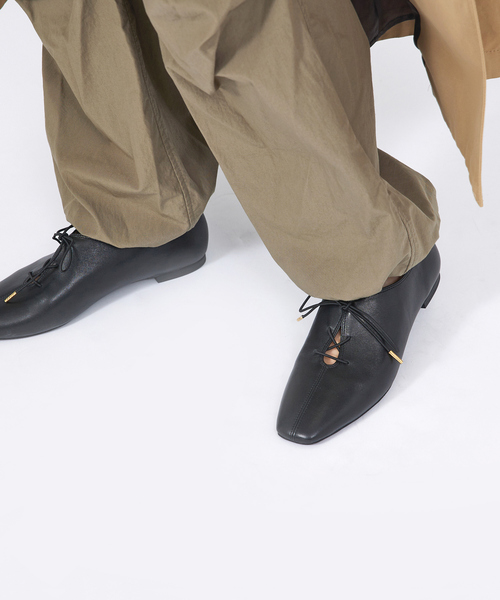 軽くて柔らかい新感覚のレザーシューズ バブーシュのようなラフなカジュアル感と、パンプスのようなきちんと感もある新作デザイン。 足に馴染むようなソフトレザーを使用しているので、軽量&柔らかい足当たりが最大の魅力。 ・お洋服との合わせも履き心地もスニーカーと同じ感覚で使えるので、即戦力 ・服装/季節問わず使えるオールラウンダー ・伸縮するゴムの紐なので、結び目を解かずにそのまま着脱できて玄関先でもストレスフリー ・トレンドの靴下合わせが簡単にできてオシャレ見え ・足に馴染むようなソフトレザーを使用しているので外反母趾の甲高の方とも相性抜群 スムースレザーを使用したブラック・アイボリーはもちろん、今シーズンはスタイリングへの馴染みが良いクリームイエローもおすすめです。 ※一部撮影画像は、光の当たり具合で色味が違って見える場合があります。商品の色味は白背景のスタジオ撮影画像をご参照下さい。 ※画像の商品はサンプルです。実際の商品と仕様、加工が若干異なる場合があります。 ※輸送中に傷が付くことを予防する為にソールに保護シートが張られている商品がございます。保護シートが張られたままご使用になると滑りやすく危険でございますので必ず剥がしてからご使用ください。また、全ての商品に保護シートが張られている訳ではございませんのでご了承ください。