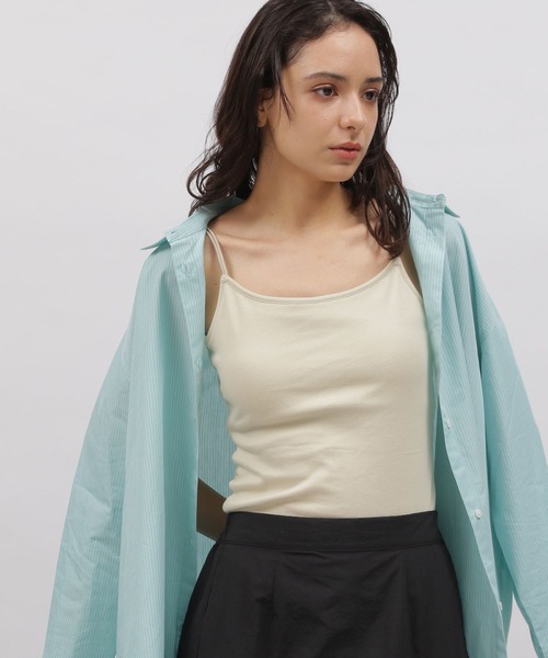 着丈がベーシックなカップ付きキャミソール。 ストラップ部分を華奢な2本使いにする事で、華やかでデザイン性のある1枚に。 柔らかく肌触りもいいので、着心地も抜群です。 【素材】 天竺編みのTC素材を使用。 【スタイリング】 ベーシックなアイテムなのでデイリー使いはもちろん、シアーアイテムと合わせるとストラップが見えておすすめ。