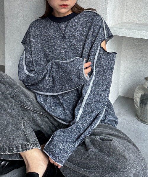 feepur2024ss ◆Detail トレンド感のあるラメ裏毛生地を使用したルーズシルエットのスウェット。 近づくとほんのり分かるほどのさりげなくナチュラルなラメ感なので主張しすぎず、スタイリングにも取り入れやすい一枚。 肩から袖にかけてのデザイン切り替え部分は、縫い代部分を長めにとりビンテージライクな加工に◎ 袖口や裾のロールした切りっぱなしデザインと相まって、どこか古着のような雰囲気に仕上げました。 アーム部分のスリットがさらにルーズな印象に。 ヒップにかかる程のミドル丈の着丈で抜群の安心感。フィット感のあるボトム合わせのスタイリングバランスも素敵です。 ◆Fabric -------------------------- 透け感:なし 伸縮性:あり 光沢:ややあり 生地の厚さ:★★★☆☆ -------------------------- ※汗や水、摩擦により他のものに色移りすることがありますのでご注意ください。 ※濃色製品は色移りすることがありますので、他の物と分けて洗濯してください。 ※生産時期によりサイズや質感・色味に若干の個体差がみられる場合がございます。 ※商品画像は、光の当たり具合やパソコンなどの閲覧環境により、実際の色味と異なって見える場合がございます。 予めご了承ください。 ※着用、お取り扱いの際は、商品についている品質表示とアテンションタグを必ずご確認ください。 ◆Information 欲しいitemをお気に入り登録(♡マークをclick) ・お買いのがし対策…完売itemの再入荷やラスト1点の情報をお知らせ ・欲しいitemをお得にget…pricedownになったらいち早くお知らせ ・スムーズ検索…ZOZOのお気に入りアイテムページで簡単checkできるから、再検索不要♪