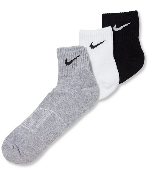 Premium cotton and moisture management provide maximum comfort in these Nike performance socks that feature a reinforced heel and toe with arch support. Cotton/nylon/spandex Machine washable Imported Nike men's athletic quarter socks 3 pack Reinforced heel and toe Arch support Moisture management helps keep feet cold and dry Extended Size fits Men's Shoe Size 12-15