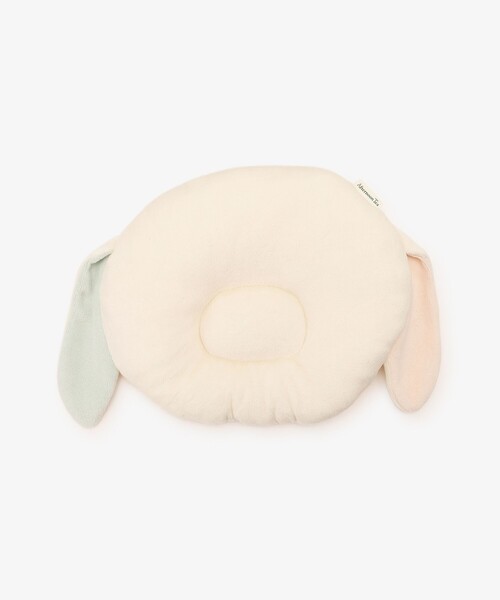 垂れたうさぎのお耳デザインが可愛いお昼寝枕です。 ふっくらとやわらかい素材感でベビーの頭部をやさしく支えます。なだらかな傾斜を加えた設計にしており、赤ちゃんの頭の形を整える補助や絶壁防止に活躍する1品。どちらかの方向ばかり向いてしまうときは、高くなっている部分を向いている方向にあててあげるのがおすすめです。おねんねしている時でも起きている時間でも、あおむけにしてあげるとお耳がお顔とちょうどよく合わさるのでベスト写真が撮れますよ。 ご自宅用はもちろん、出産ギフトとして大切な方へ贈ってみてはいかがでしょうか。プラスワンしやすい同モチーフのベビーアイテムを他にもご用意していますよ。 *長時間のつけ置き又は、濡れたまま放置はしないでください。 *サイズや仕上がりが1点ずつ異なります。