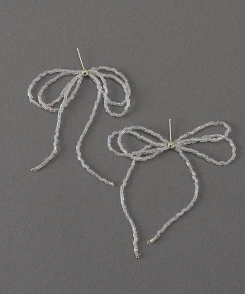 【クリアビーズのキラキラ表情】 ●キラキラと煌めくオーロラのようなクリアビーズ ●華奢なディテール×目を引くサイズ感 ●落ち感のあるリボンのシルエット スリムなディテールながら、程よいボリューム感のあるルックスで耳元に華やかさをプラスしてくれるピアス。 注目のリボンシルエットを取り入れたトレンドライクなデザインがポイント! やかな付け心地で耳への負担がかからないのも魅力です。 #リボンモチーフ 【2024 Spring/Summer】【24SS】 ※金属アレルギー症状が出にくいチタン、ニッケルフリー素材、ステンレス等を使用しています。すべての方にアレルギーが起こらないということではありませんので、万が一アレルギーの症状が出ましたら直ちに使用を中止してください。 ※メッキ製品(特に銀メッキ)は変色しやすいため、こまめなお手入れで防止してください。長期放置やスプレー香料などの同時使用は、特にお避けください。 ※メッキ製品は、アレルギー体質の方や体調が低下している方など、かぶれることがあります。肌に異常を感じた時はご使用をお止めいただき専門医にご相談ください。 ※アクセサリーは壊れやすいものです。取り扱いに注意していただき大切にご使用いただけるようお願い申し上げます。 重量(片耳) : 約2g ※商品画像は、光の当たり具合やパソコンなどの閲覧環境により、実際の色味と異なって見える場合がございます。予めご了承ください。 ※商品の色味の目安は、商品単体の画像をご参照ください。 ▼お気に入り登録のおすすめ▼ お気に入り登録商品は、マイページにて現在の価格情報や在庫状況の確認が可能です。 お買い物リストの管理に是非ご利用下さい。